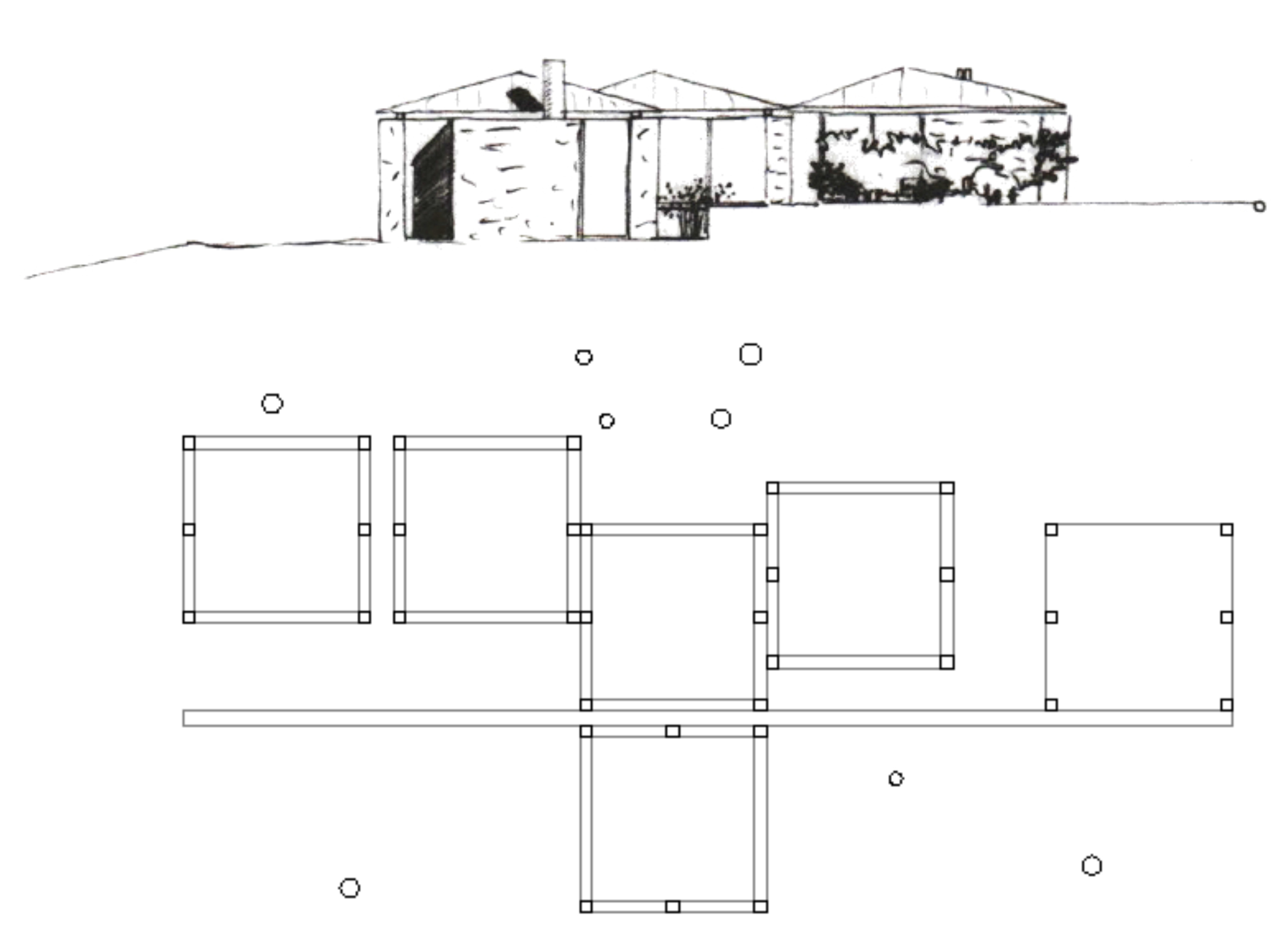 Líneas de trabajo similares pueden rastrearse en numerosos ejemplos de arquitectura moderna: por ejemplo, en la casa Weber DeVore de Louis Kahn, el juego de relaciones entabladas entre el elemento lineal del muro y los distintos núcleos que componen la casa (una casa cuya atomización se tiene como condición de partida) permite que en ciertos momentos las piezas “salten” esta barrera y comuniquen los dos mundos, o se separen de ella creando secuencias de espacios libres y ocupados.