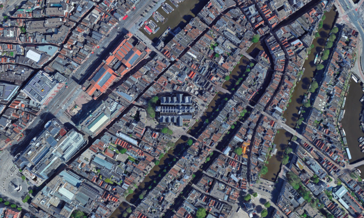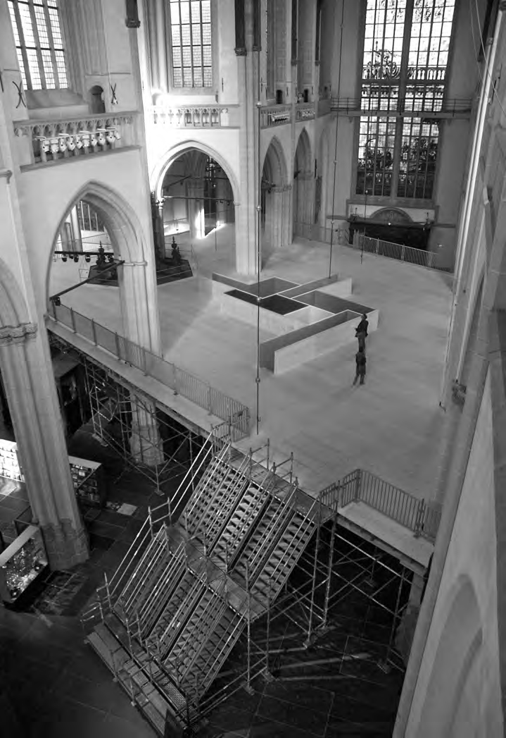 En Ámsterdam, la Oude Kerk es la única estructura del casco histórico que no está alineada según el trazado de los canales. En un ejercicio con reminiscencias de aquella planta de Ronchamp de Le Corbusier sobre los restos de la vieja iglesia precedente, el artista Krijn de Koning insertó en 2010 una «parcela» obediente, que siguiera la misma dirección de las demás, sobre la cual dispuso un evocador campo de juegos.