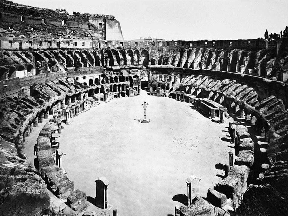 Cuando en 1744 el papa Benedicto XIV coloca una gran cruz en el centro del Coliseo y poco tiempo después lo declara consagrado a los mártires cristianos, es plenamente consciente del poder de este simple gesto para alterar el uso de aquel espacio. En unos pocos años, un edificio que iba camino del derrumbe o de los proyectos de reutilización más variopintos, se convierte en lugar de peregrinación y monumento nacional.