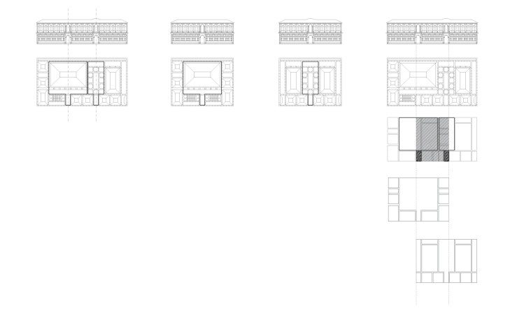 Aún más interesante resulta saber que Scamozzi también prolongó la Biblioteca hacia el lado contrario, esta vez para construir las Procuratie Nuove de la plaza. Aquí, en cambio, hizo gala de una gran sutileza al «corregir» a su maestro, reduciendo levemente el friso que aquel había dispuesto. La comparativa entre estas dos formas de coser una intervención urbana puede decirnos tanto sobre las variaciones en el sentir de una época como la lectura de la abundante tratadística que las acompañó.